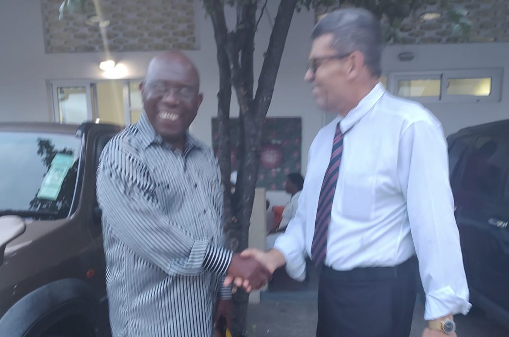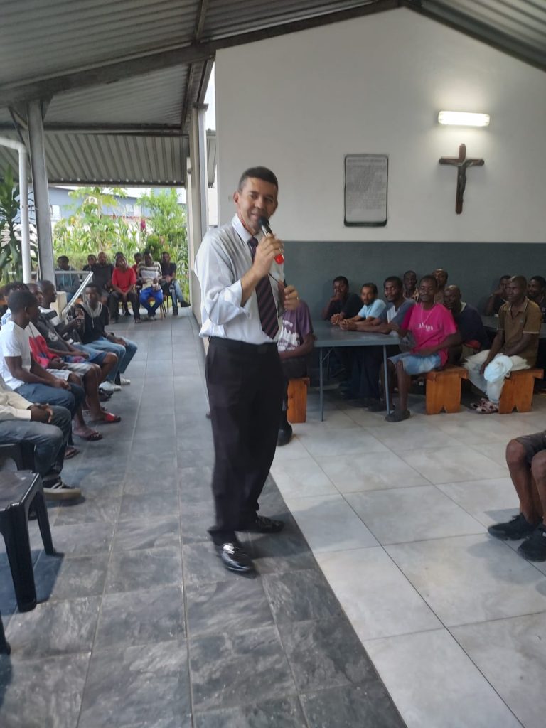 Capelão Messias em encontro com o Embaixador de Moçambique na Italía, na cidade de Maputo, onde conheceu o projeto Mateus 25, coordenado pelas irmãs de Maria uma Missão de Deus acolhendo vidas, e agora apoiada também pelo Instituto. Na ocasião, o capelão Messias ministrou uma palestra sobre a importância de estarmos unidos para ajudar o próximo independente de raça, cor ou ideologia.