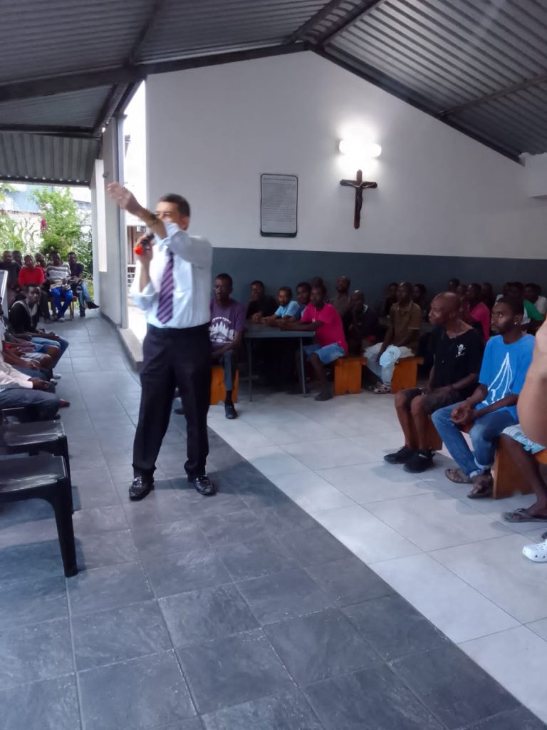 Capelão Messias traz uma palavra de fé em visita a o projeto social de acompanhamento a pessoas vulneráveis em situação de rua assistidos pelo projeto Mateus 25 em Moçabique – África